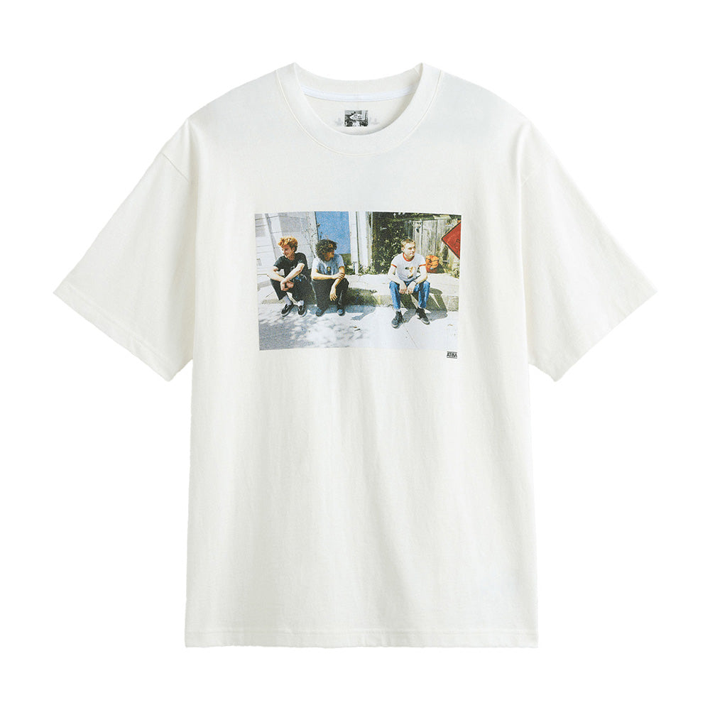 An everyday cotton tee gets Atiba's signature touch with a photo of Aidan Mackey, Rowan Zorilla, and Ben Kadow sitting curbside on the front, adding a nostalgic feel to an everyday staple. Custom Vans logo artwork from legendary graffiti artist Eric Haze tops off Atiba's nod to skateboarding. A classic crewneck, ribbed collar for structure, and 5-Checkerboard embroidery round out this uniquely wearable piece.